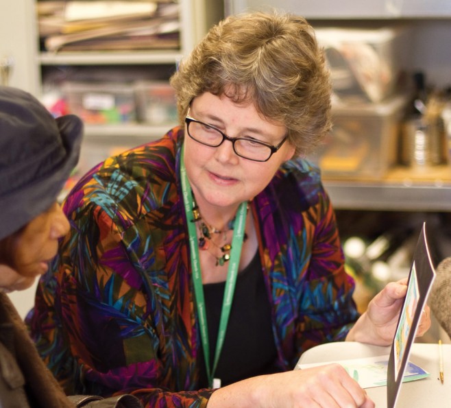 At the LIFE center, a day program run by the University of Pennsylvania as an alternative to nursing home care for the elderly, Martin Johnson sees about 30 clients per week in several art therapy groups. Using a variety of different media, people in her classes use art to express, understand and talk about the depression, isolation and grief many of them face, and to remind themselves that it’s never too late to try, to learn, to do something new.