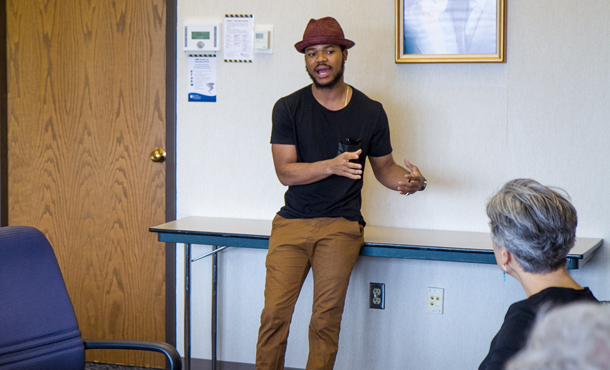 Joshua Mensah, a third-year digital design major, was named EMU’s nominee for the Governor’s Business Plan Challenge to be held May 2, 2013, in Richmond, Va. (Photo by Jonathan Bush)