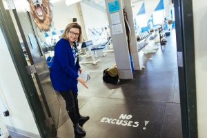 Lunch time provided a chance to re-group, meet the head of dining services – Pioneer Caterers’ Bruce Emerson – and chat with students, faculty and staff. Huxman connected with people through mutual acquaintances, learned where students are from and what brought them to EMU, and, whenever possible, talked about sports. ” I believe deeply in the value of the student-athlete-leadership model here at EMU,” said Huxman, who participated in a variety of varsity sports through her high school and college years.