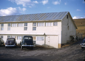 The owner of the “turkey dorm,” Jacob Shenk, lent the space to EMC for several years as an emergency measure until a standard dormitory could be constructed. By 1951-52, the turkey dorm was abandoned, with its occupants moving into the “block dorm,” also known as Birchwood, by the EMC park area. (This dorm was torn down in 1988 to make way for building the Parkwoods apartments in 1989.)