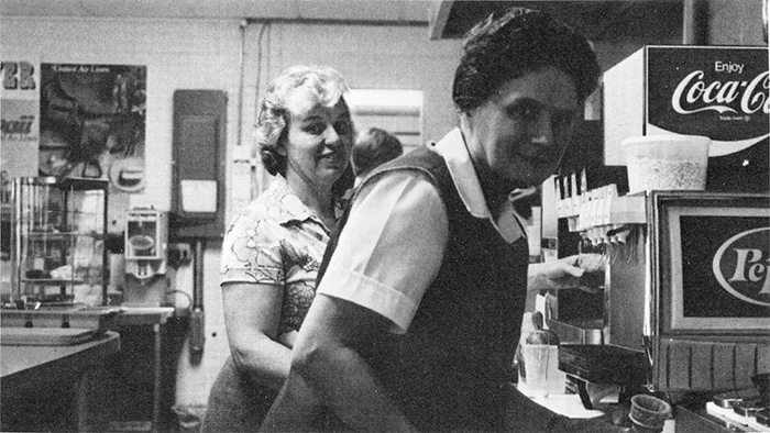 Helen Ours and Lois Shirk in the Snack Shoppe, 1982.