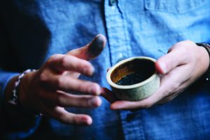 A student prepares to offer ashes during an Ash Wednesday service in Lehman Auditorium. (Photo by Andrew Strack)