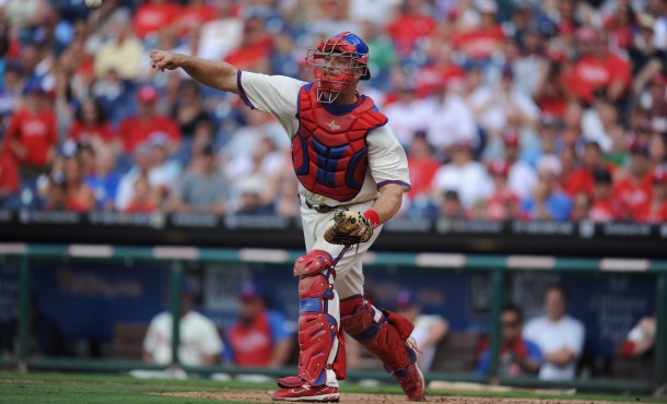 Through 30 games, Erik Kratz was hitting .291 with seven home runs, 17 RBI and has thrown out 10 of 21 base stealers, a 47.1 percent clip that exceeds Carlos Ruiz’s 37.2 percent before he got hurt. Photo by Miles Kennedy.