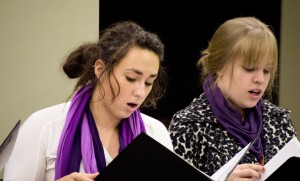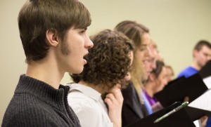 Junior Sarah Sutter will sing the melody in Keebaugh’s adaptation of “The Lord’s Prayer” with the women’s choir. She appreciates the unique opportunity to work with the composer and learn the inspiration and intent behind the music. In this version of “The Lord’s Prayer,” the choir surrounds the audience while mimicking the echoes of singing in a cave or cathedral. With this format, Keebaugh intends to make the audience part of the ensemble – breaking down the “us versus them” structure of traditional performance to better commune the personal sacred themes he writes into music.