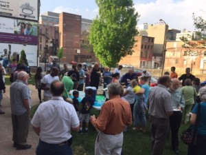 The Church of the Sidewalk, held on the steps in a semi-covered porch, was immediately popular with smokers and people who wanted to bring their dogs. Hosting worship here provided a welcoming symbolic place, because, as Tom says, “the doors of church are incredibly hard to get people through.” Those who worshiped at this church were a hardy and loyal bunch. When winter came to Allentown, the group turned down offers to come inside. Ripple Church bought pole heaters and blankets and carpet squares to sit on, and the Church of the Sidewalk missed only one Sunday through the winter because of snow.
