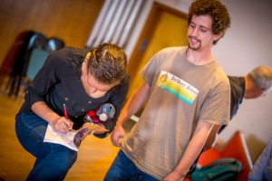 Jolee Paden signs a copy of her book “The Spiritual Runner,” for a fellow student.