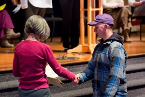 Three pastoral assistants, known as PAs, were also recognized: Christina Hershey, Perry Blosser and Hannah Daley. PAs are students whose “desire to serve God is integrated into life, work and relationships.” Both Hershey and Blosser served on numerous committees. Hershey organized conversation groups, Election Day Communion and other communal events. Blosser “pulled together countless musicians and signing groups” for chapel events, and he also leads the monthly hymn sings. Daley, who concluded her field hockey career this fall, leads the Fellowship of Christian Athletes, Athletes Speak and Athletes’ Bible Study.