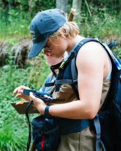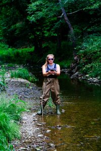 The field work was “exciting and exhausting,” says Williams. “I love being in nature, so it is kind of like a dream come true for me to be out in the field doing research that is both helping our understanding of how percent canopy coverage affects water temperature while also adding to the larger ongoing project that has been collecting stream restoration data for many years.”