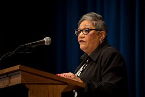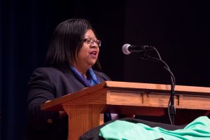 “Remain awake through this great revolution,” she admonished, taking the phrase from King’s 1988 sermon in Washington D.C.’s National Cathedral. “…These are serious times we are living in now … as serious as the Middle Passage, as serious as those whips and chains and auction blocks, as serious as the Montgomery bus boycott, the Million Man March, the killing of Trayvon Martin and Tamar Rice, the Million Women March, the killing of nine innocent people in a church, mass shootings all over this country. If we don’t wake up and stay woke, we will have missed all Dr. King fought for. We are living in a new revolution, and it’s just not affecting black people or people of color. This new revolution affects all of us, from each nation and country.”