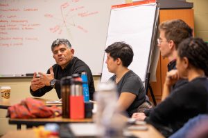 That changed the first week of November when Nassar spent two days on campus, participating in several interactions: a seminary chapel sermon, a lunch discussion with present and future Middle East cross-cultural participants, a classroom discussion with students at the Center for Justice and Peacebuilding, and an evening forum and discussion open to the community. Nassar’s time on campus concluded with a student-led tour of EMU’s sustainability efforts, a request he specifically made to gain more ideas for his own family farm in Palestine.