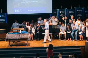 With diversify joining grow, engage and celebrate as one of the four goals of EMU’s 2017-22 strategic plan, Huxman encouraged students to become active partners and participants: “Students, I wish you well. In addition to doing well in class and making new friends, I encourage you to think boldly and ask yourself, ‘How can I engage around the table with a diversity of people and ideas?’”