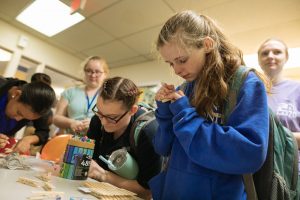 Senior Lorren Oesch carefully painted plants onto a large stone, and said that she loves “watching creation emerge after winter. I’m going to write here, ‘You’re growing.’ That’s something that I’ve experienced here at EMU and appreciate. It’s important to remember that we’re growing here, and give ourselves grace.”