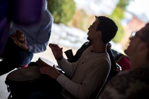 And on Friday, sitting in a drum circle set up to spread joy even further, pastoral assistant and senior Perry Blosser said the week had had a good “spirit.”