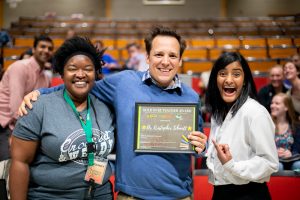 Another student shared appreciation for his “enthusiasm and energy” in the classroom, but also “the tremendous amount of time and effort into helping students connect with opportunities outside of class with research projects and travel experiences. “He’s gone out of his way to help his students find success inside and outside of the classroom,” she said.