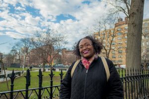 Ready to begin her own spring break, Shyleen packed up and we walked with her towards her apartment. Jon took a few more photos in front of Marcus Garvey Park, while I continued peppering her with questions about city life: What do you do in your free time? Where do you go to the grocery store? How do you carry your groceries home? How did you find a place to live? At her corner, amidst the thanks for the visit, she said, “OK, I’m a hugger,” and gave us both hugs before heading off.