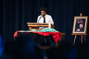 The Rev. Osagyefo Uhuru Sekou, along with student and pianist Earnest Kiah, performed “Bury Me.”