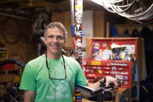 Wyse pulls his equipment in a trailer behind his own bicycle, and is entering his 10th year of providing house calls and event support. He also volunteers his mechanic skills for a number of local nonprofits.