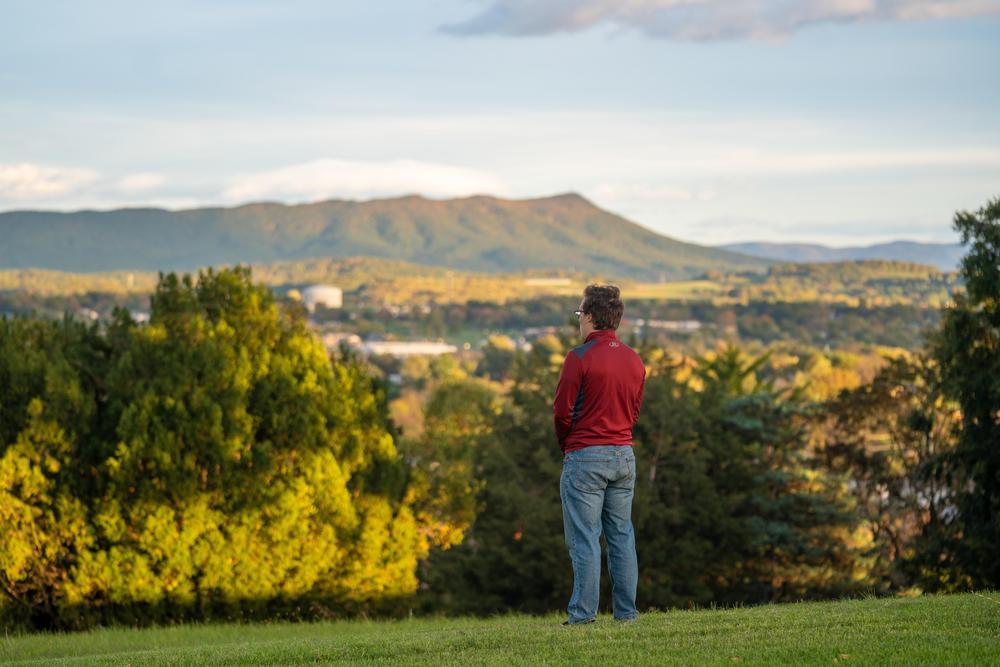Levi Clymer ’25 takes in the view from the top of the EMU Hill during an evening in October. The high-altitude hangout is one of our favorite spots on campus to soak up the scenery.