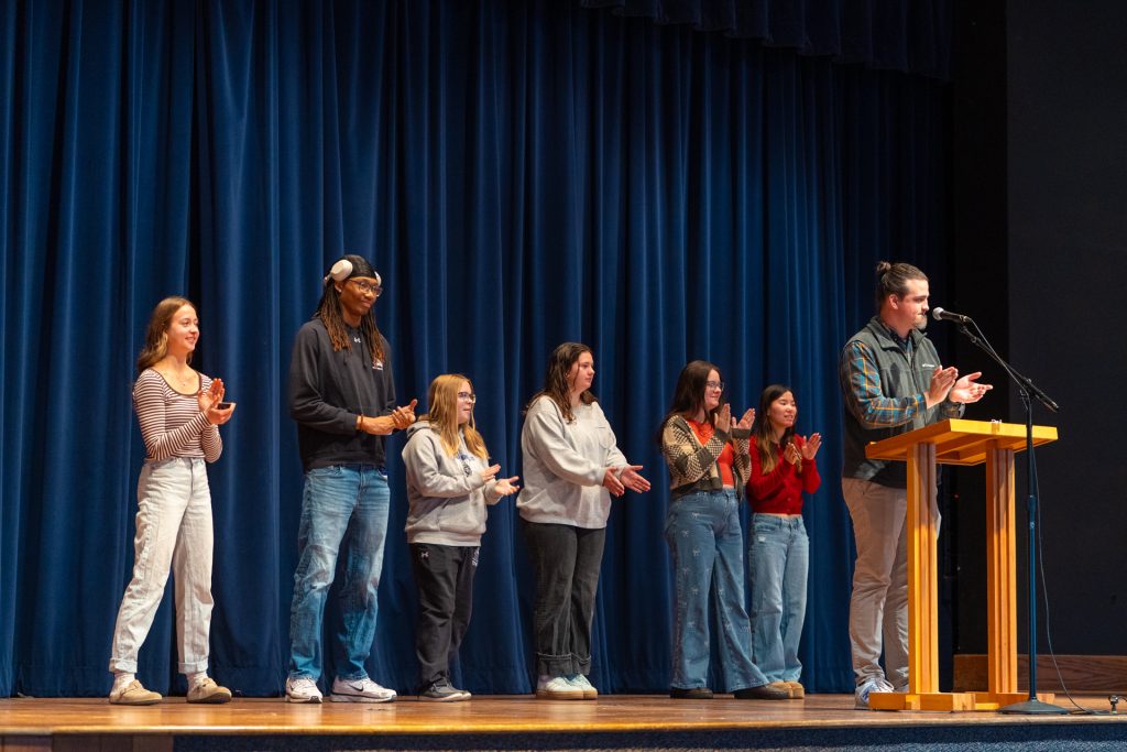 Students are recognized as Enthusiastic Encourager award recipients during a ceremony on Wednesday morning.