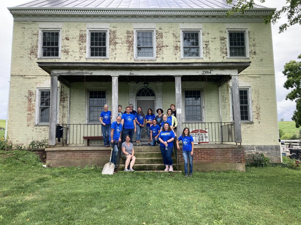 The Rev. Dr. Sarah Ann Bixler (front right) leads a tour of the historic Lincoln Homestead during the Fall 2022 Faculty-Staff Conference.