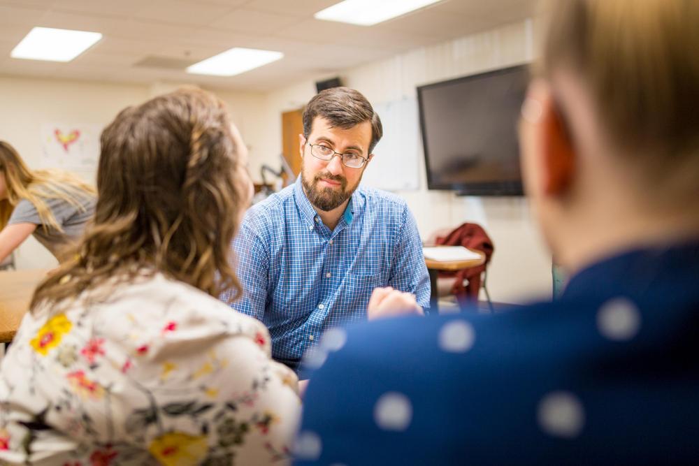 Dr. Michael Horst meets with graduate counseling students in 2017.