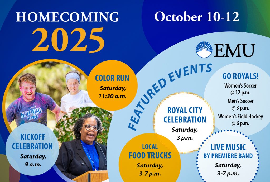 Herm is sending out his Royal roar, calling all EMU alumni, family, friends, students, and community members, both near and far, back to campus for Homecoming 2025 from Oct. 10-12.