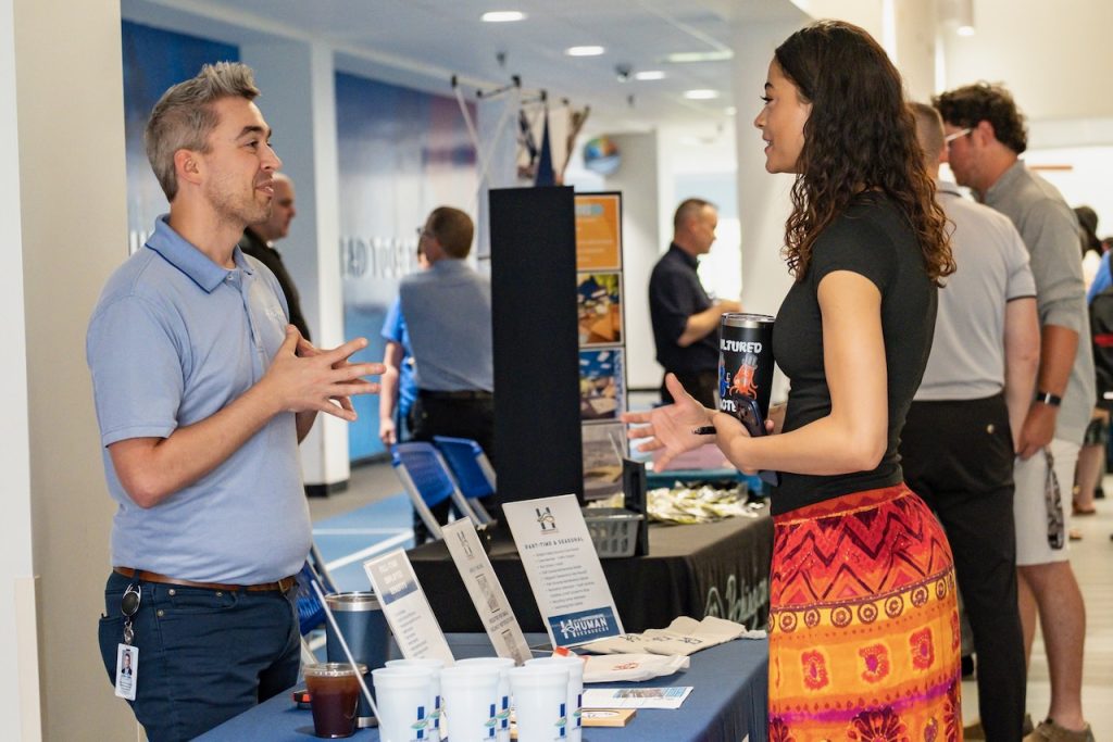 Students connect with local employers at a career fair in the Hall of Nations on Thursday.