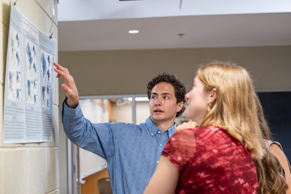 He also delivered a poster presentation analyzing census data from 2000 and 2020 for areas of Washington D.C. and Denver to chart gentrification in those cities. Later that afternoon, he and three other students gave an engineering capstone presentation on a “single-axis shake table” they designed to simulate sesmic movement and its impact on structures.