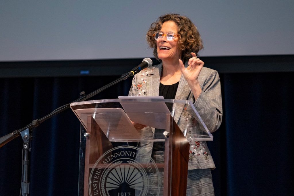 A keynote address by Dr. Deborah Lawrence, chief scientist at Calyx Global, opened the ACE Festival on Wednesday morning. Lawrence, who taught at the University of Virginia as an environmental sciences professor for more than 25 years, reflected on Braiding Sweetgrass by Robin Wall Kimmerer, EMU’s Common Read this year, and spoke about her research on forests in Borneo, Mexico, and around the world.