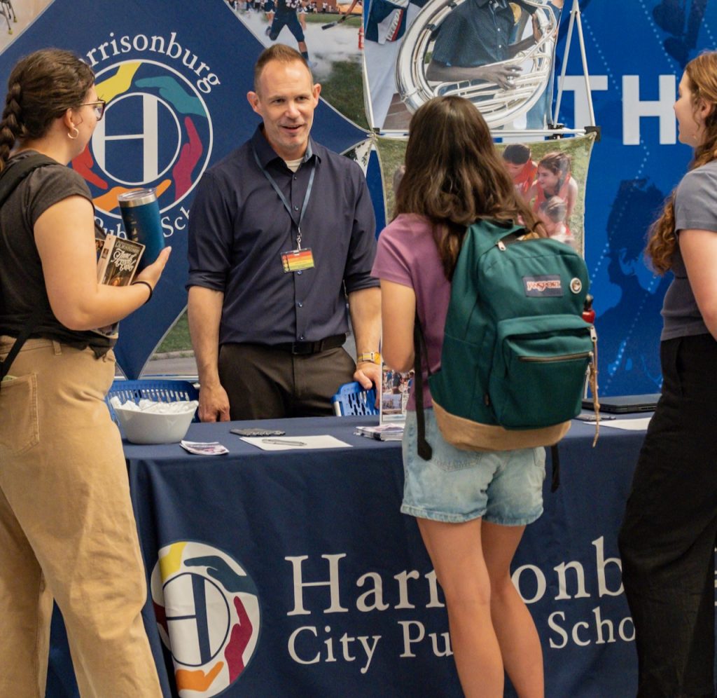 Another employer at the career fair represented the local school division. Jeron Baker, assistant director of human resources for Harrisonburg City Public Schools, said the division typically looks to fill between 50 and 60 jobs each year, mostly teaching positions in math, science, elementary education, and English Language Learner (ELL) classes.