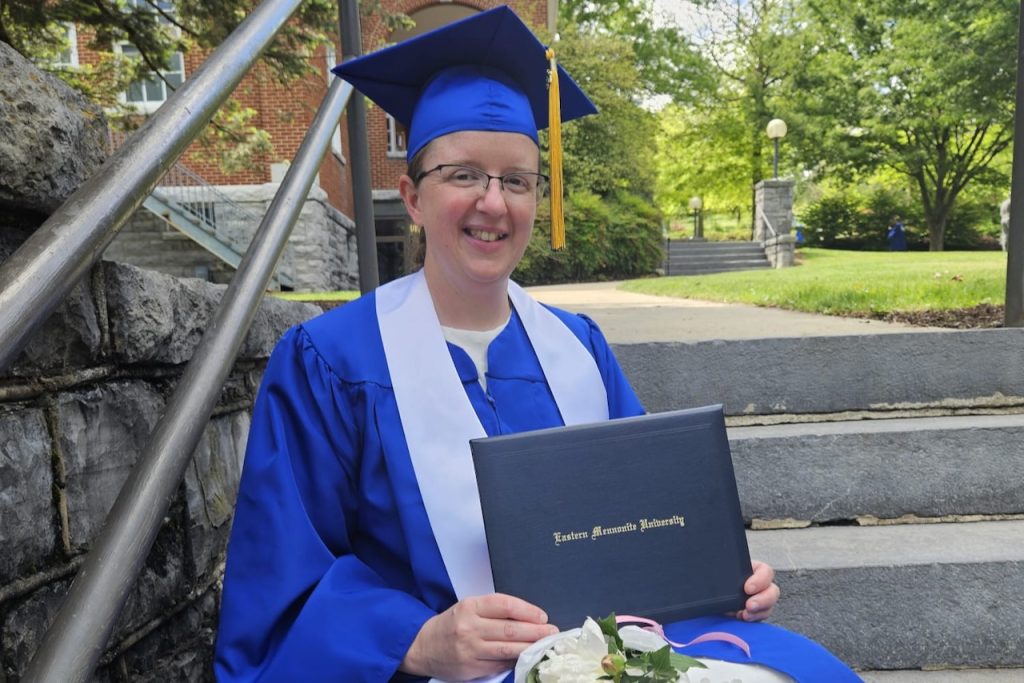 Beachy graduated with degrees in English and writing studies last spring after five semesters at EMU. She had transferred to the university from online classes at Blue Ridge Community College. By the time she enrolled at EMU, she had already spent four years teaching at the church school she graduated from and another 10 years developing curriculum at Christian Light Publications in Harrisonburg.