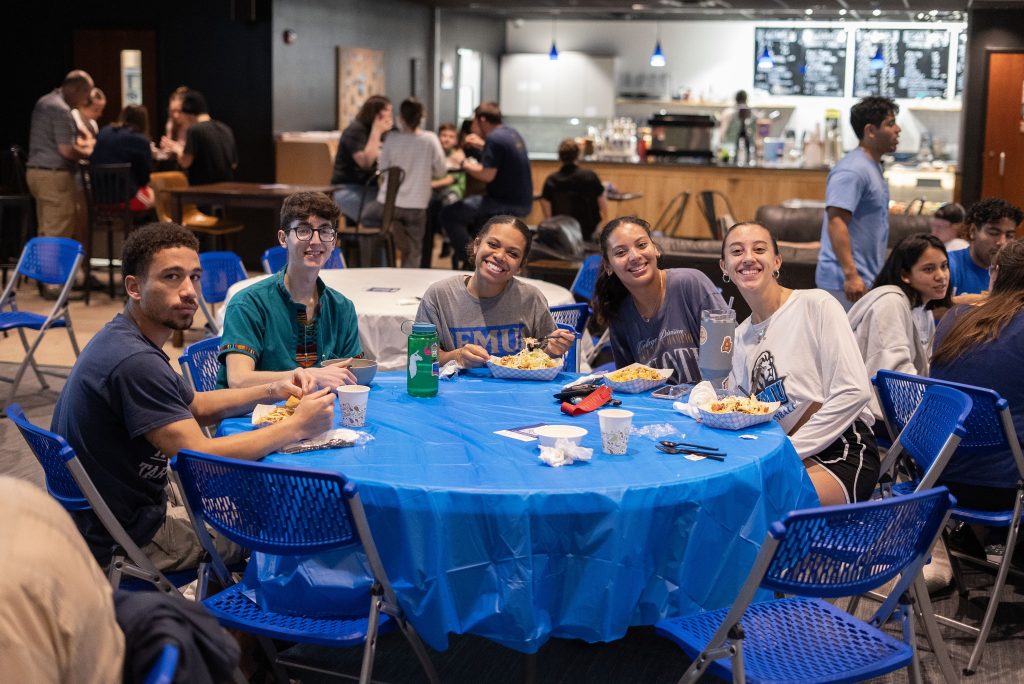 - watching hundreds of alumni, employees, donors, and students connect and celebrate during the LovEMU Community Meal; and