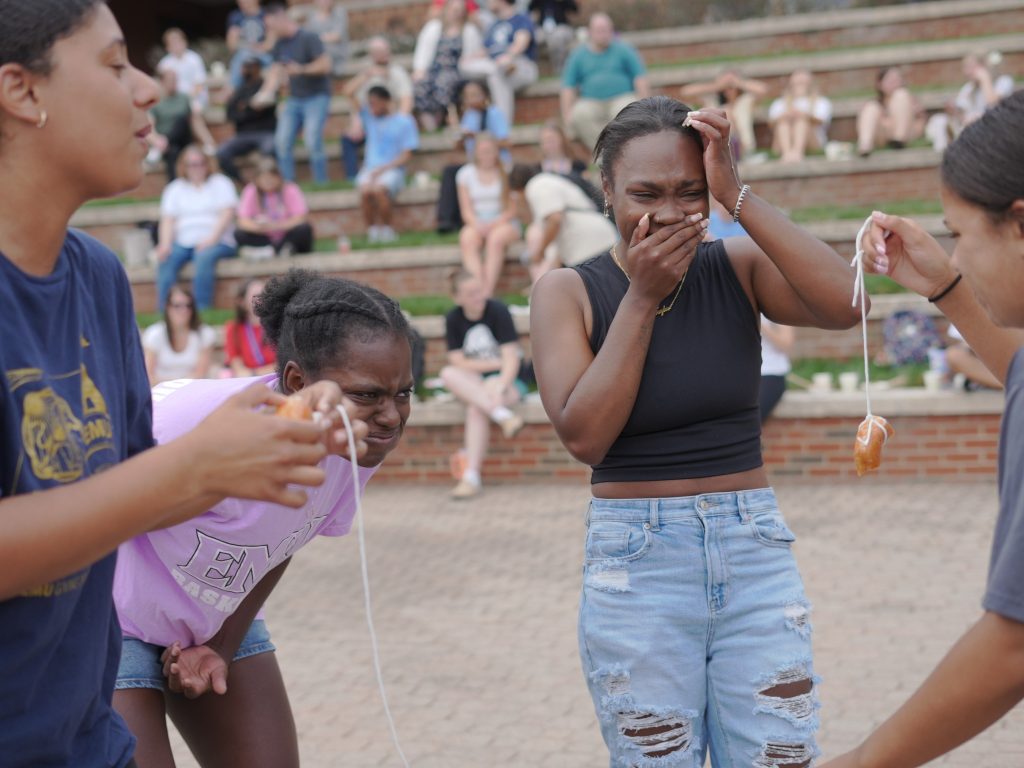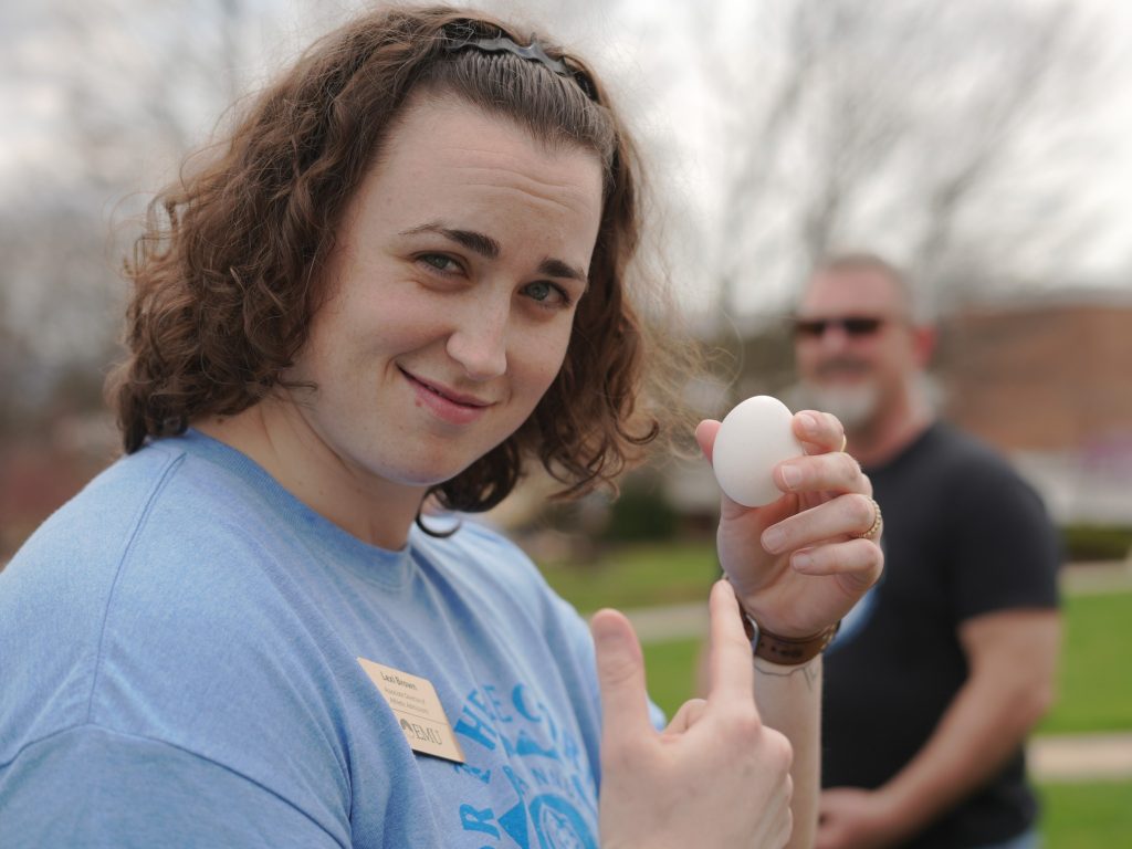 The day kicked off with the third annual LovEMU Pep Rally at Yoder Arena. The rally had it all: a dramatic entrance by Herm on an e-bike, the return of the BaZOOKa T-shirt cannon, and performances by the top three athletic teams from the previous night’s Lip-Sync Battle.