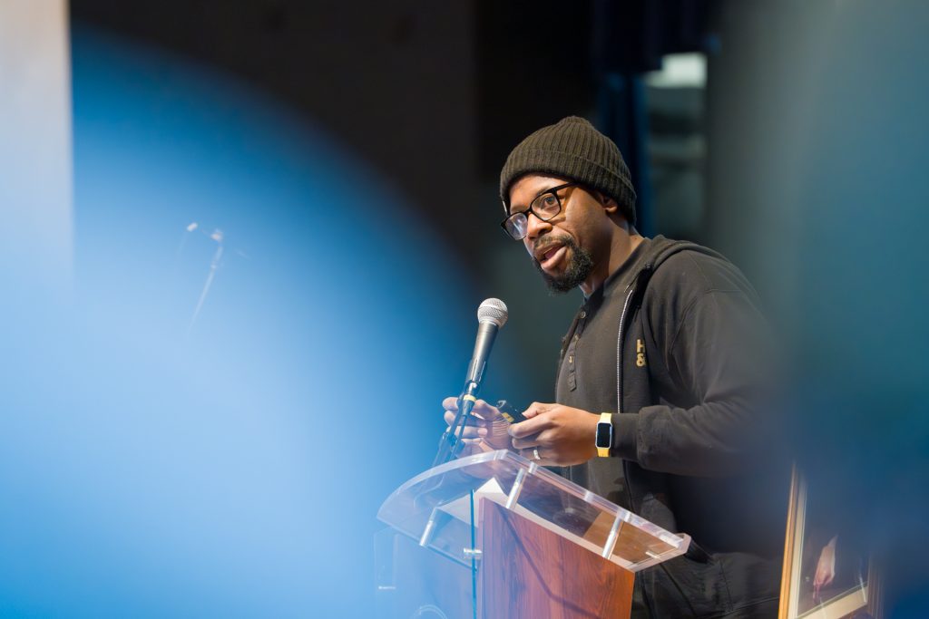 Olúfẹ́mi O. Táíwò, an associate professor of philosophy at Georgetown University and a fellow at the Climate and Community Institute, served as the featured speaker for the Martin Luther King Jr. Day Convocation. He is the author of Elite Capture and Reconsidering Reparations, a contributor to Greta Thunberg’s The Climate Book, and a past recipient of a Marguerite Casey Freedom Scholar fellowship. His presentation was titled “Becoming Firefighters: Climate Justice and the Fight for a Free World.”