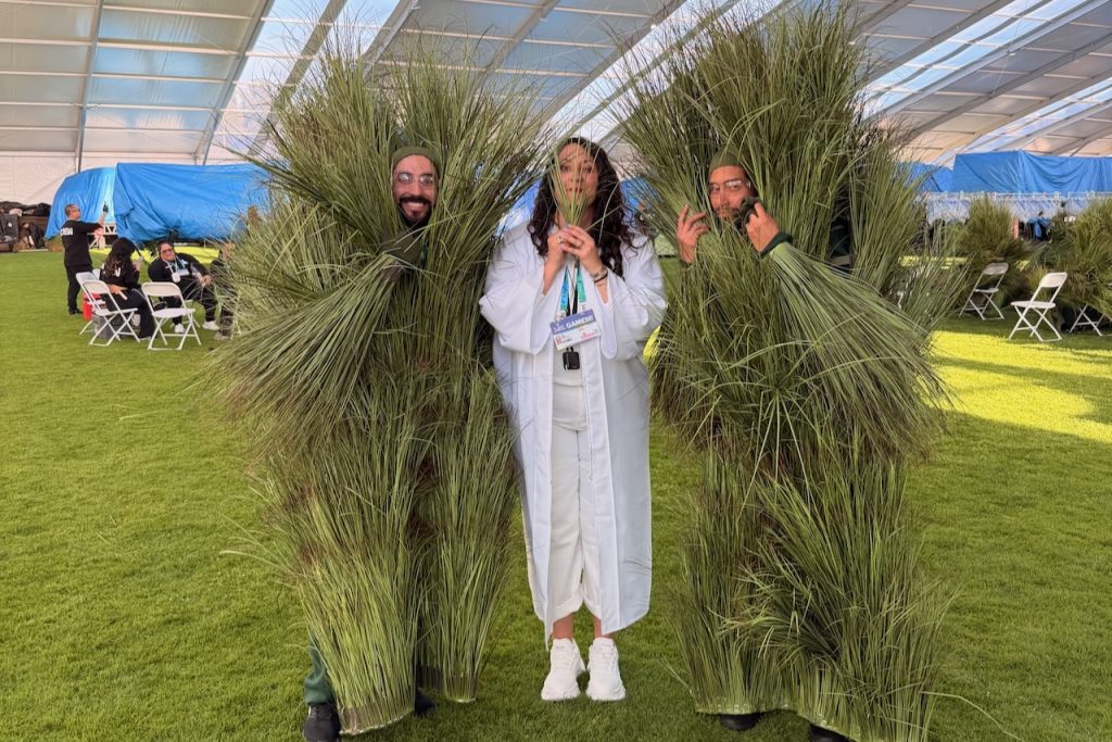 On Sunday morning, the choirs arrived at the stadium, passed through security, and prepared for their performance at a nearby soccer field that had been turned into a green room. They shared the space with the orchestra and the performers dressed in grass suits who were part of the set for the Bad Bunny halftime show.