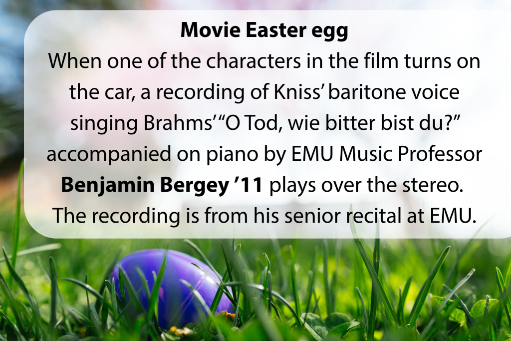Kniss, who is originally from Chicago, majored in vocal performance and digital media at EMU. His parents, Fred ’79 and Rosalyn ’77, and older brother, Michael ’06, are alumni, and he said he had always wanted to attend EMU.