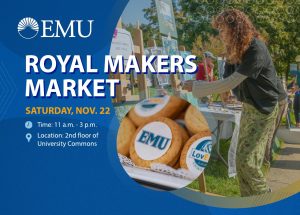 Royal Makers MarketDate: Saturday, Nov. 22Time: 11 a.m.-3 p.m.Location: Second floor of University Commons Online: Facebook event Get your holiday shopping done at EMU’s first-ever student, alumni, and employee Makers ... read more about EMU hosts its first-ever Makers Market
