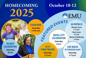 This story was last updated on Oct. 10. Herm is sending out his Royal roar, calling all EMU alumni, family, friends, students, and community members, both near and far, back ... read more about Save the date! EMU celebrates Homecoming 2025 from Oct. 10-12
