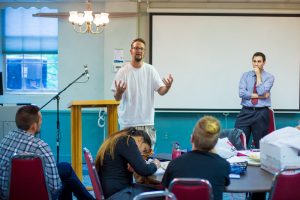After five-year hiatus, formerly annual conference successfully resumes at EMU Lars Åkerson ’08 used a familiar Mennonite symbol, that of a quilt, to discuss the importance of belonging. “We need ... read more about Peace & justice take center stage at Intercollegiate Peace Fellowship