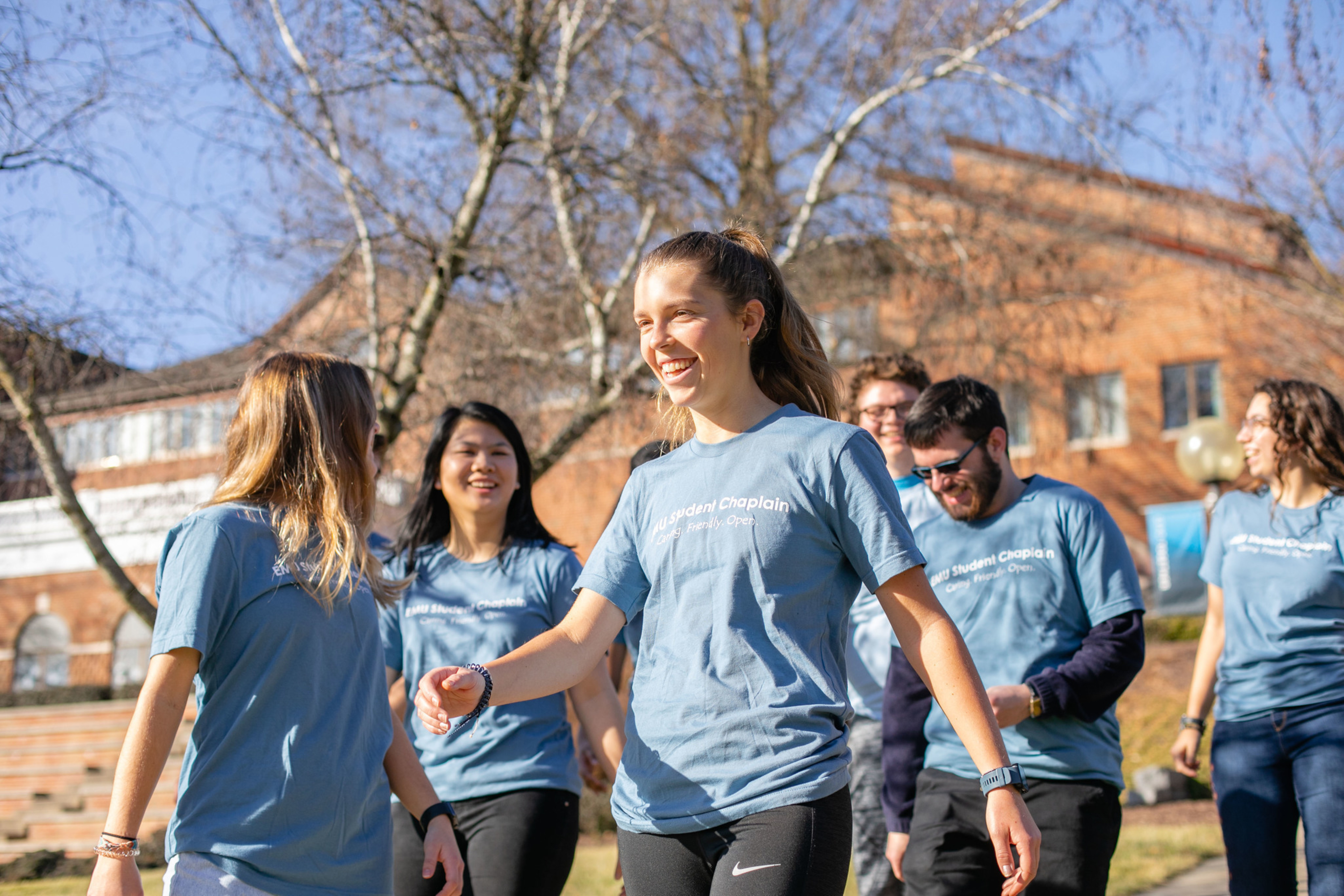 Student chaplains are student leaders serving the EMU campus community in focused faith and spiritual life roles. They can focus on worship, service, interfaith, sustainability, diversity, equity, inclusion, peacebuilding, community, or wellness. Student chaplains meet regularly with the university chaplain and the student chaplain team.
